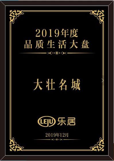 除了這兩座大獎,大壯名城還獲得了由廣州日報主辦的2019年度“中國地產榮譽榜”——2019中國宜居幸福社區;以及新浪樂居主辦的2019年度樂居創新峰會——2019年度品質生活大盤。