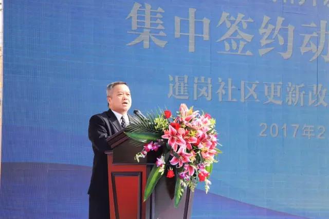 黃埔區副區長嚴志明發表致辭,對項目施工單位、監理單位、全區各單位各部門提出要求,確保把暹崗社區更新改造項目打造成精品工程和示范工程!
