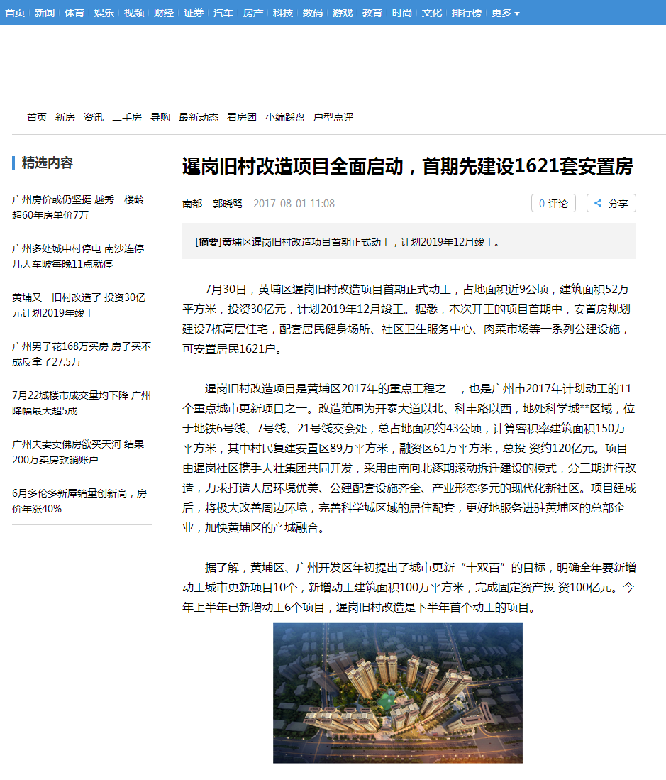 暹崗舊村改造項目全面啟動,首期先建設1621套安置房_房產廣州站_騰訊網