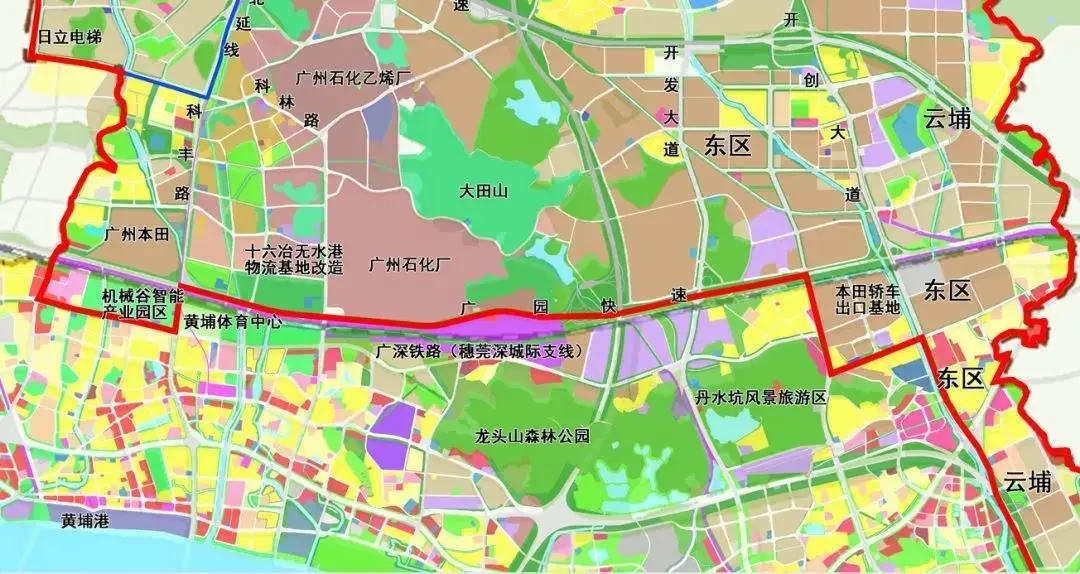 科學城擴容后,南邊中間部分主要以廣園快速路為界,但未包括廣深鐵路線在內。而從目前和規劃來看,新規劃的高鐵黃埔站大概率與廣深鐵路線共軌,并引進廣汕高鐵。