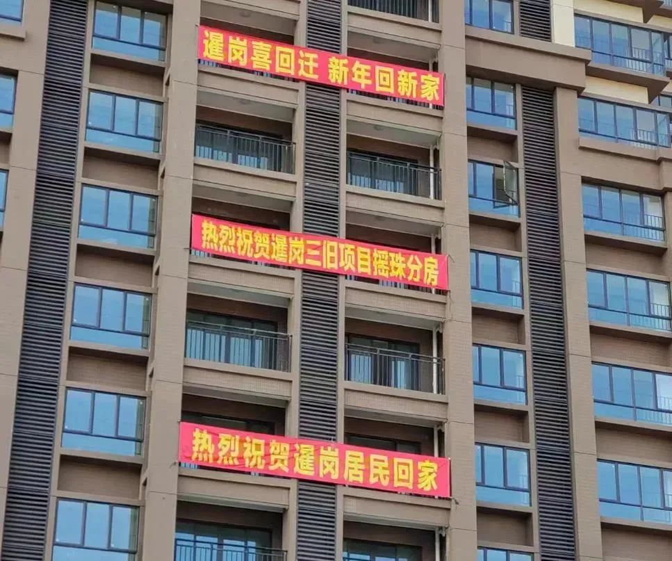 一大早,在和煦的陽光照耀下,美輪美奐的暹崗社區(qū)回遷房上掛著紅底黃字“暹崗喜回遷 新年回新家”、“熱烈祝賀暹崗三舊項(xiàng)目搖珠分房”等橫幅顯得特別的喜慶醒目,整個(gè)會(huì)場彩旗招展,迎接村民的大紅拱門氣派又宏偉,洋溢著歡樂和諧的氣氛!